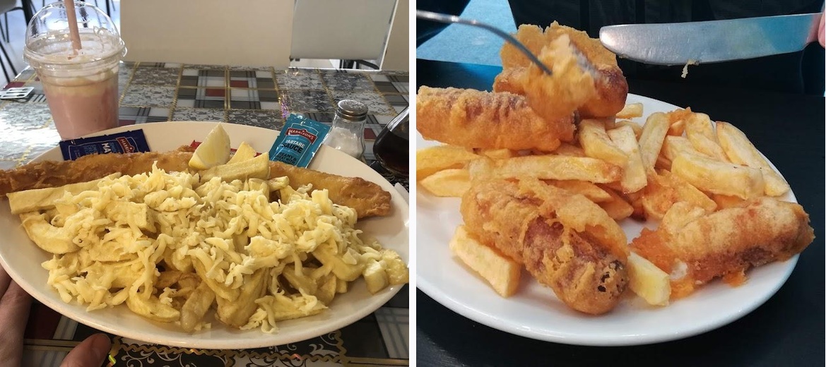 Cod Bites are amazing, very tasty, never had a bad piece of fish. Staff are very nice. Generic Atmosphere, but I strictly take away anyways, so doesn't really apply. Chios are very good. Highly recommend.